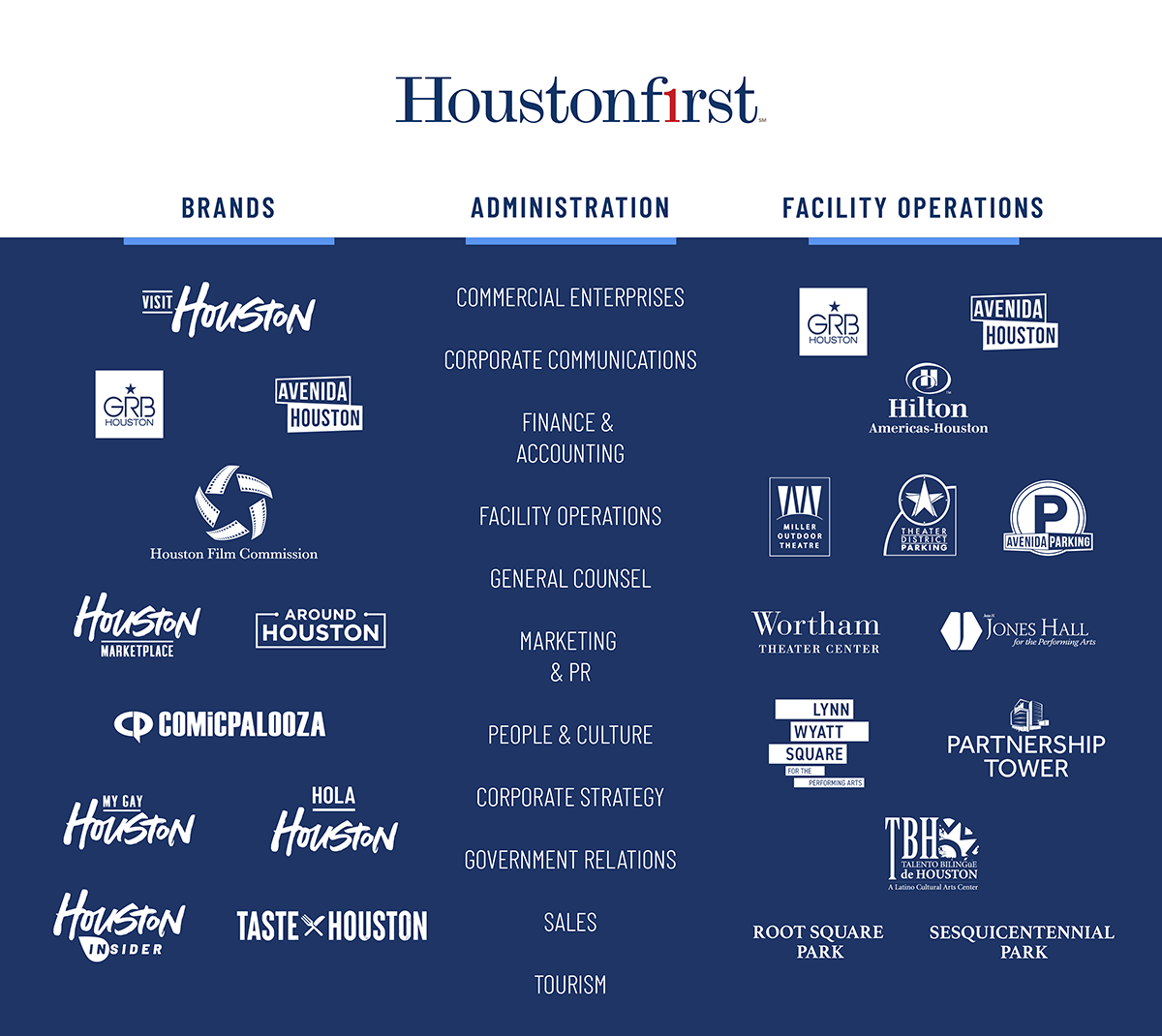 A local government corporation formed in 2011, Houston First’s responsibilities include the development of the destination brand strategy, promoting the city worldwide, driving tourism and convention business, operating numerous facilities, producing events that serve the community, collaborating with commercial and industry partners and much more.